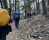 Die erste Etappe wurde mit dem Zug zurückgelegt, bevor es von Neustadt aus Richtung Kalmit zu Fuß weiterging. Unterwegs wurde viel geredet und gelacht. Manche hörten gar nicht mehr auf zu erzählen, andere wechselten plötzlich zwischen verschiedenen Sprachen, erzählten von den Kobolden und Elfen die wir auf unserem Weg trafen oder berichteten davon, gerade den Mount Everest zu besteigen. Der Grund dafür waren kleine Aufgaben, die schon im Zug gezogen wurden und über den Tag hinweg umgesetzt werden sollten.