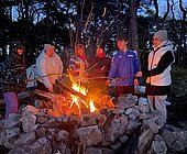 Kurz darauf ging es weiter zum Trekkingplatz. Dort wurden die Zelte aufgebaut, Feuerholz gesammelt und schließlich saßen alle zusammen am Lagerfeuer. Am Abend folgte noch eine kleine Nachtwanderung. Ein Teil der Strecke wurde alleine gegangen, was für einige eine echte Herausforderung war und Überwindung kostete. Danach ließen wir den Tag gemeinsam ausklingen.